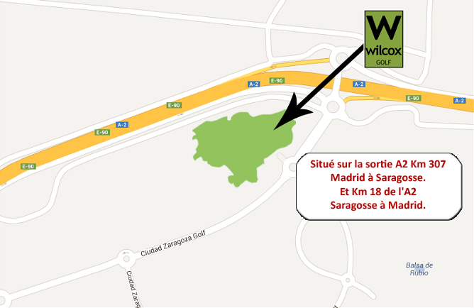 Située en bord de l’autoroute nationale de Madrid A-2, en face du centre comercial Plaza, dans Ciudad Zaragoza Golf (à la sortie du Km 307), l’École de Golf Wilcox propose des installations parfaites pour pratiquer ce sport en plein boom en Aragon dans les dernières années.